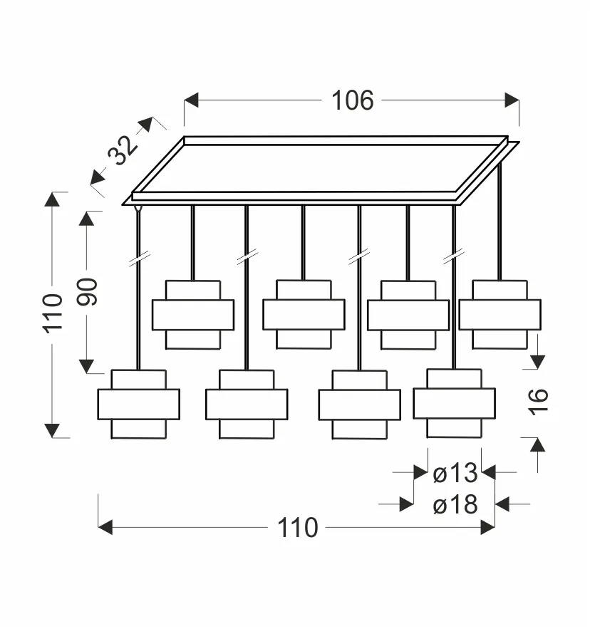 Materiał: zawiesie stalowe, klosz szklany