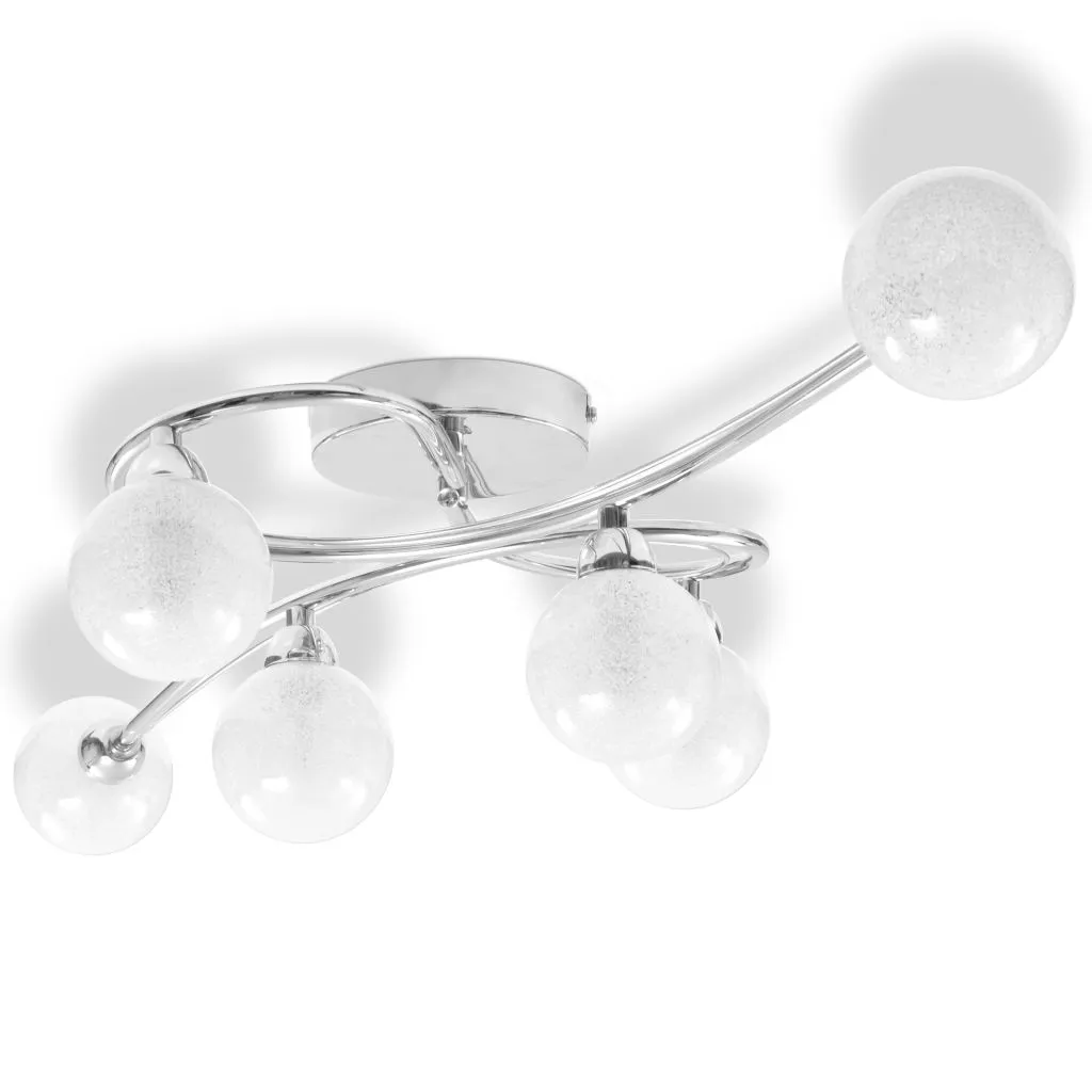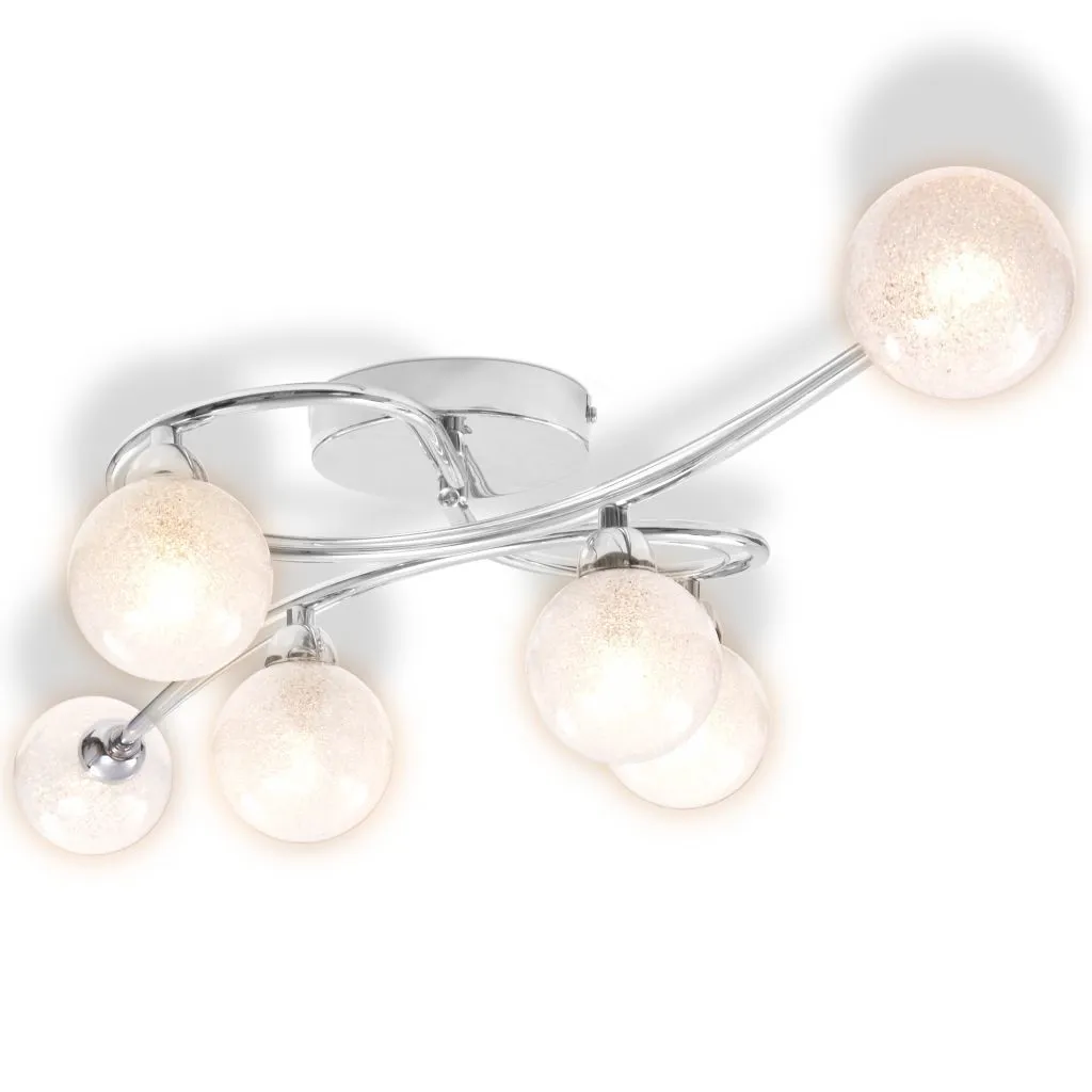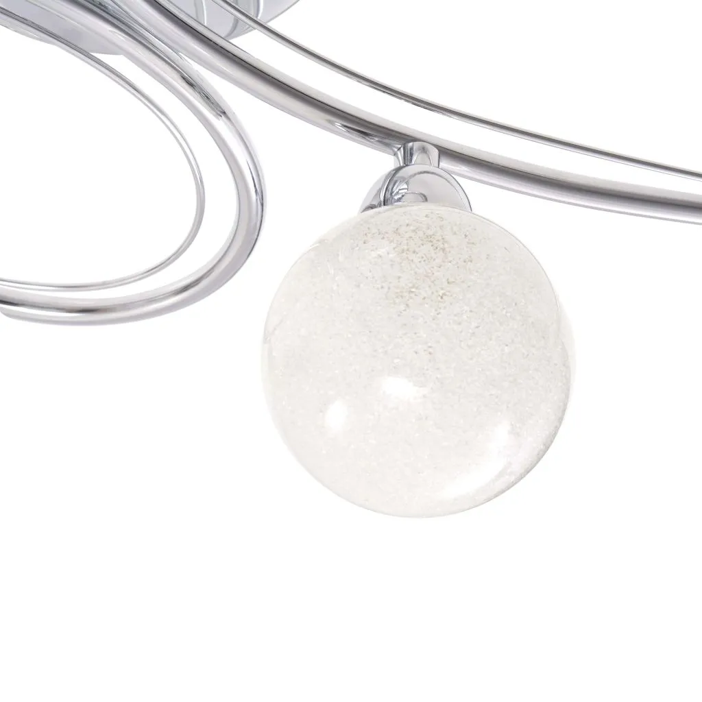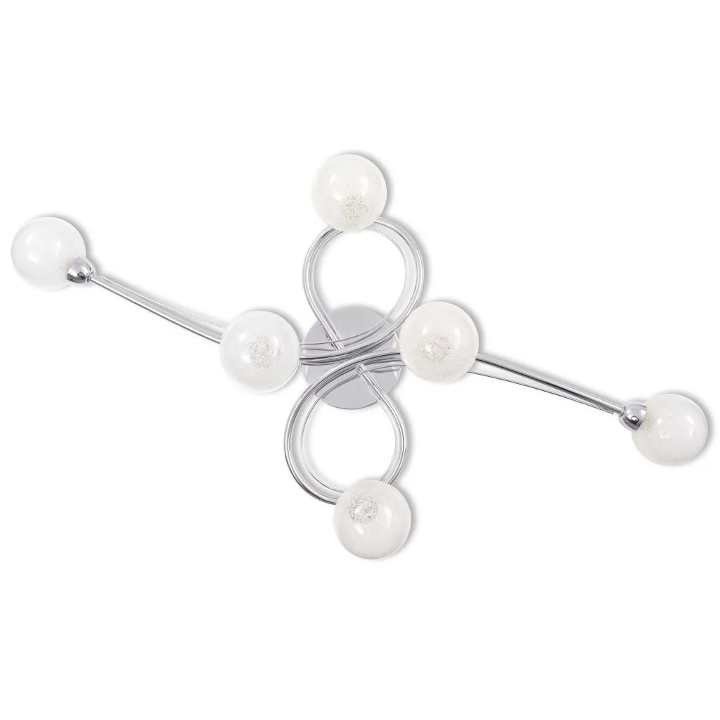 Ta elegancka lampa sufitowa z 6 kulistymi kloszami charakteryzuje się dyskretnym kształtem w stylu retro i poprawi wygląd każdego wnętrza. Lampę można łatwo zamontować na ścianie lub suficie, dzięki wysokiej jakości chromowanej, metalowej podstawie. Klosze ze szkła są teksturowane co zapewnia przyjemny efekt, ponieważ światło przez nie emitowane oświetla każdy zakątek pomieszczenia.