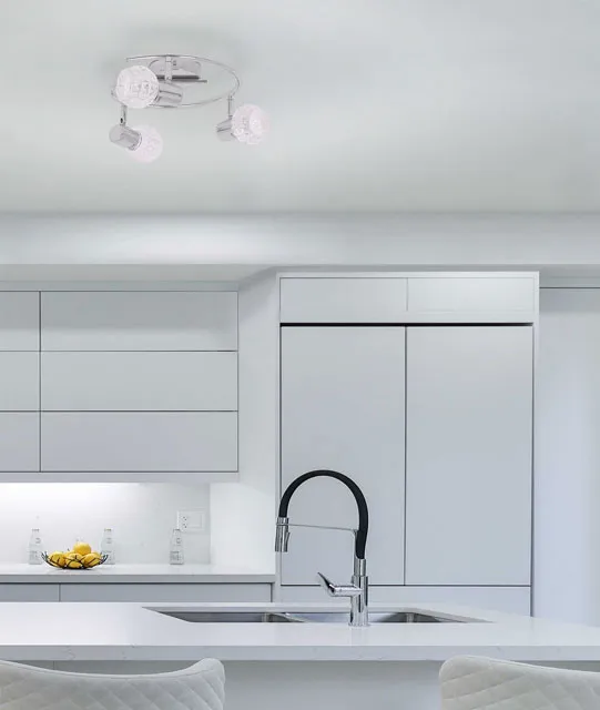 Lampa sufitowa sprawdziła się w naszej nowej kuchni. Klosze są łatwe do regulacji, co jest bardzo praktyczne. Srebrne wykończenie i szklane elementy dodają wnętrzu nowoczesnego charakteru. Cena jest także całkiem przystępna jak na taką jakość. Myślę, że to był dobry wybór, który posłuży nam na wiele lat.