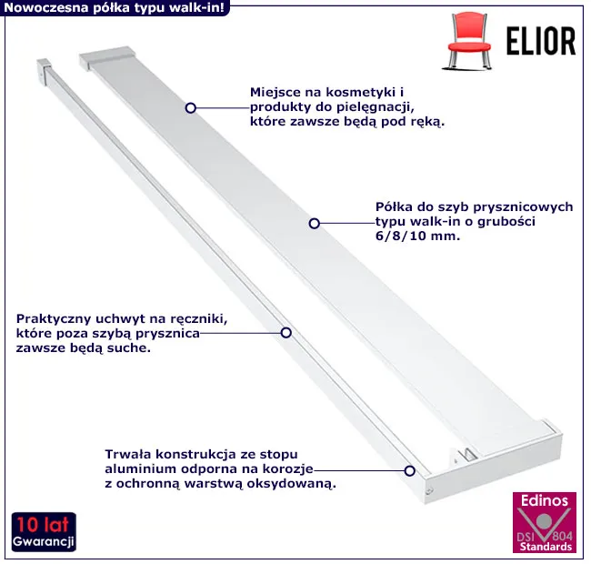 Dotyczy: Czarna półka na szybę prysznicową 100 cm - Honola 4X