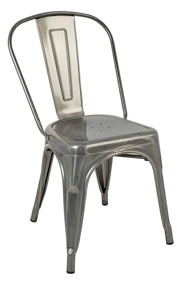 Srebrne metalowe krzesło loftowe - Mario 3X