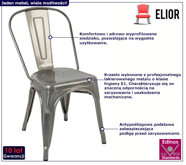 • Kolor: srebrny. Sprawdź także inne krzesła w naszej ofercie i znajdź takie, które najbardziej wpasuje się w wystrój Twojego mieszkania.