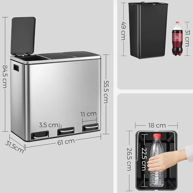 Dotyczy: Biały stalowy kosz na śmieci z 3 pojemnikami - Sefilo
