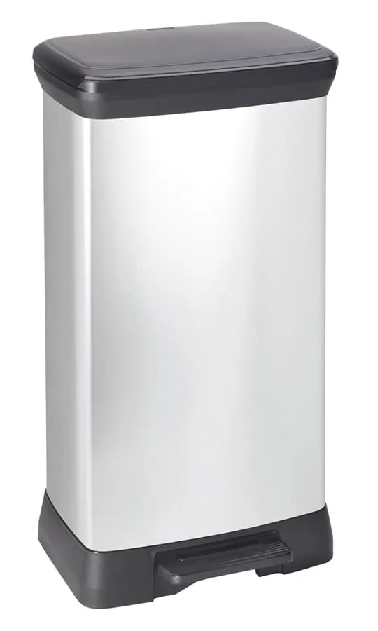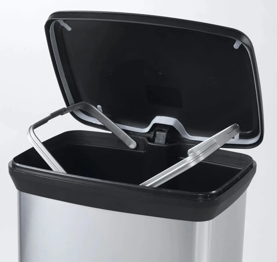 Srebrny prostokątny kosz na śmieci 50L - Olisso 4X