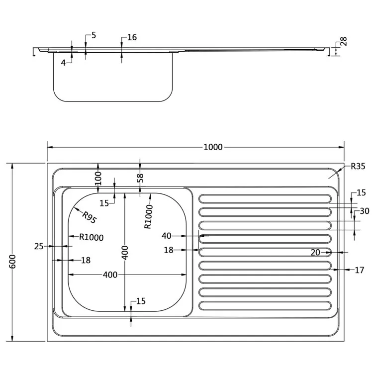 - Bardzo grube boki do umieszczenia na blacie szafki