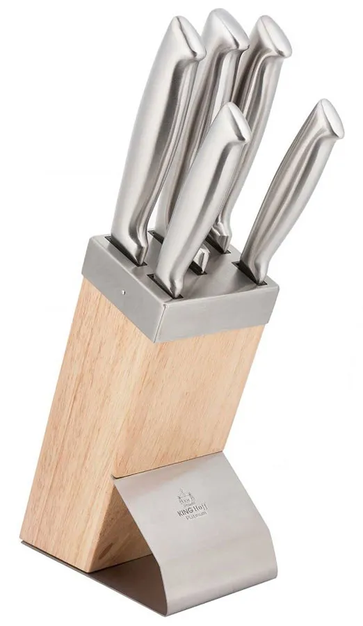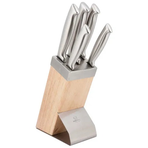 Srebrny zestaw noży ze stali w drewnianym stojaku - Sabef 9X