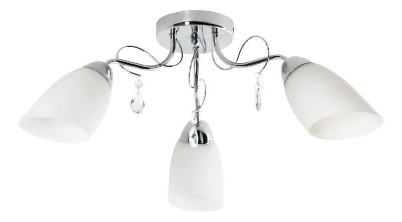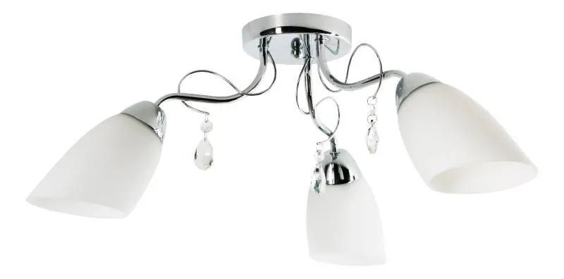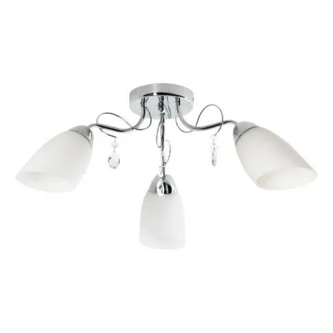 Ten niebanalny żyrandol swoją elegancją zachwyci nawet najbardziej wymagających klientów. Trzy białe klosze wspaniale wypełnią jasnością całe pomieszczenie. Korpus udekorowany kryształkami nada całości szyku. Lampa prezentuje się wyjątkowo stylowo i prestiżowo. Do produkcji użyto najwyższej jakości metalu i szkła, dzięki czemu produkt cechuje nadzwyczajna trwałość i niezawodność. Swoją funkcję spełni w szczególności w salonie, jadalni, sypialni, kuchni oraz korytarzu.