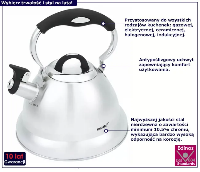 • Wyposażony w odchylany gwizdek sygnalizujący zagotowanie wody