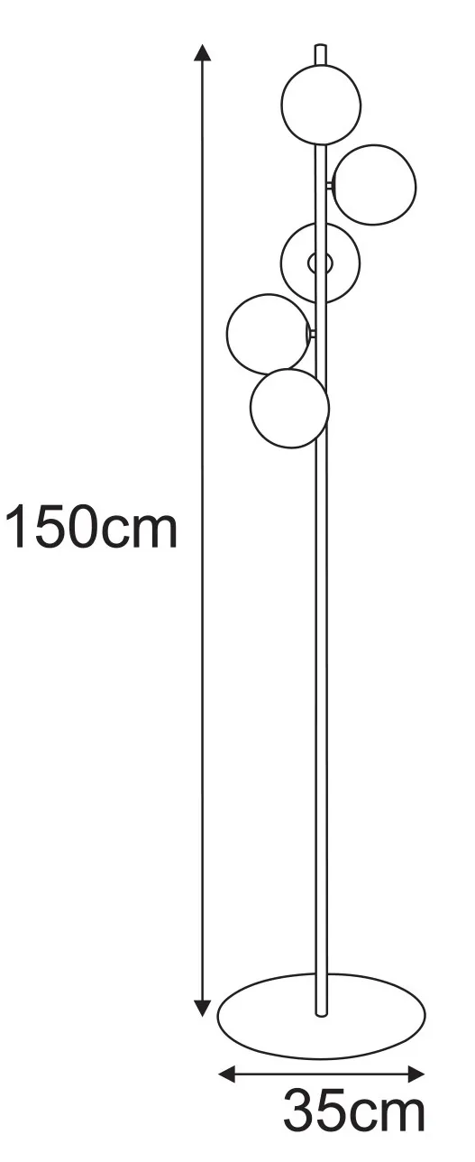 Lampa stojąca M155 Sindi marki Lumes to elegancki akcent oświetleniowy, który wprowadza do wnętrza nutę luksusu i subtelnego blasku. Jej konstrukcja opiera się na smukłej, stabilnej podstawie, z której wyrastają efektowne ramiona zakończone pięcioma kryształowymi kloszami. Każdy z nich pięknie rozprasza światło, tworząc na ścianach delikatną grę refleksów, która dodaje pomieszczeniu przytulności i wyrafinowanego charakteru.