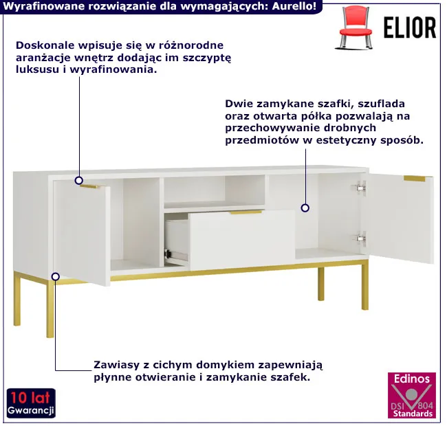 Dotyczy: Szafka RTV na złotych nóżkach 135 cm kaszmir - Pascal 5X