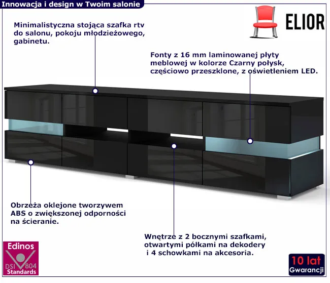 Dotyczy: Stojąca szafka rtv czarny + dąb stone - Gosmin