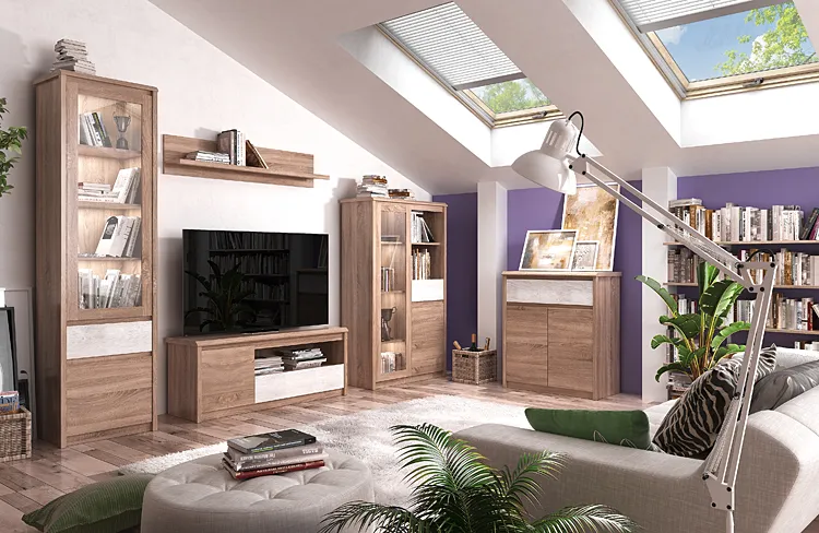 Sentar marki Elior to kwintesencja funkcjonalizmu inspirowana naturalną estetyką w klimatach eko. Każdy, z 14 elementów kolekcji został precyzyjnie zaprojektowany tak, aby sprostać dynamicznym wymaganiom nowoczesnego życia, łącząc praktyczność z bezkompromisowym stylem. Płynne otwieranie i zamykanie szuflad dzięki nowoczesnym prowadnicom kulkowym z pełnym wysuwem to tylko jedna z zalet, które ułatwiają codzienne użytkowanie. Dekoracyjna linia blatów oraz bezuchwytowe fronty dodają meblom charakteru, a zastosowanie naturalnej barwy dębu sonoma wprowadza do wnętrz ciepło i spokój. W skład kolekcji Sentar wchodzą komody, szafy ubraniowe, regały, witryny, szafka rtv, szafka nocna oraz ława kawowa przeznaczone do aranżacji salonu, pokoju dziennego, młodzieżowego lub sypialni. Poznaj kolejny model z linii - szafkę rtv Buffali 14X!