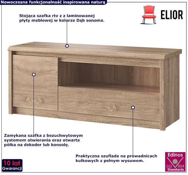 • Kolor: Dąb sonoma. Kliknij w link i sprawdź także inne szafki rtv dąb sonoma w sklepie Edinos.pl.