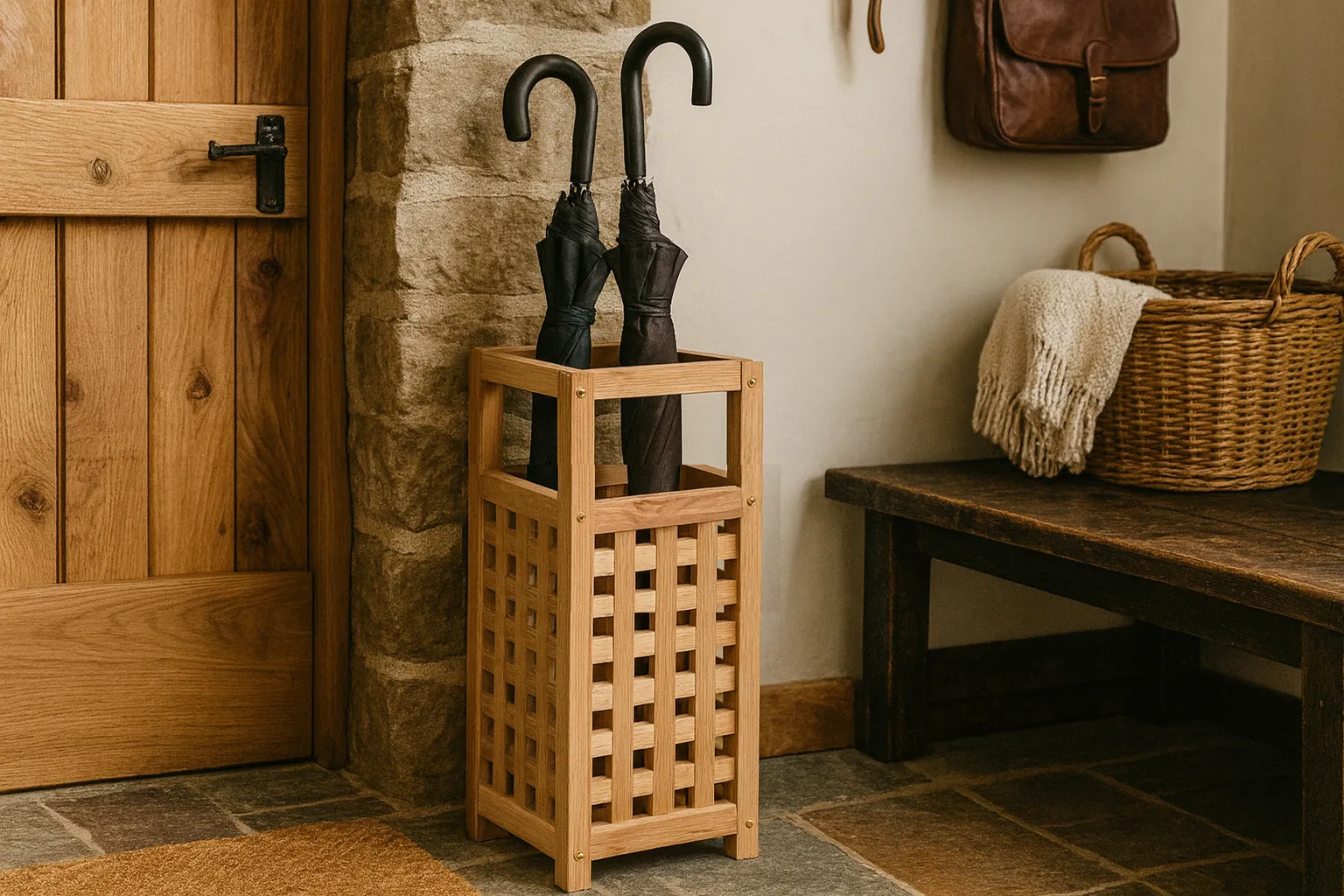 Klasyczny pionowy stojak na parasole z litego drewna Colin
