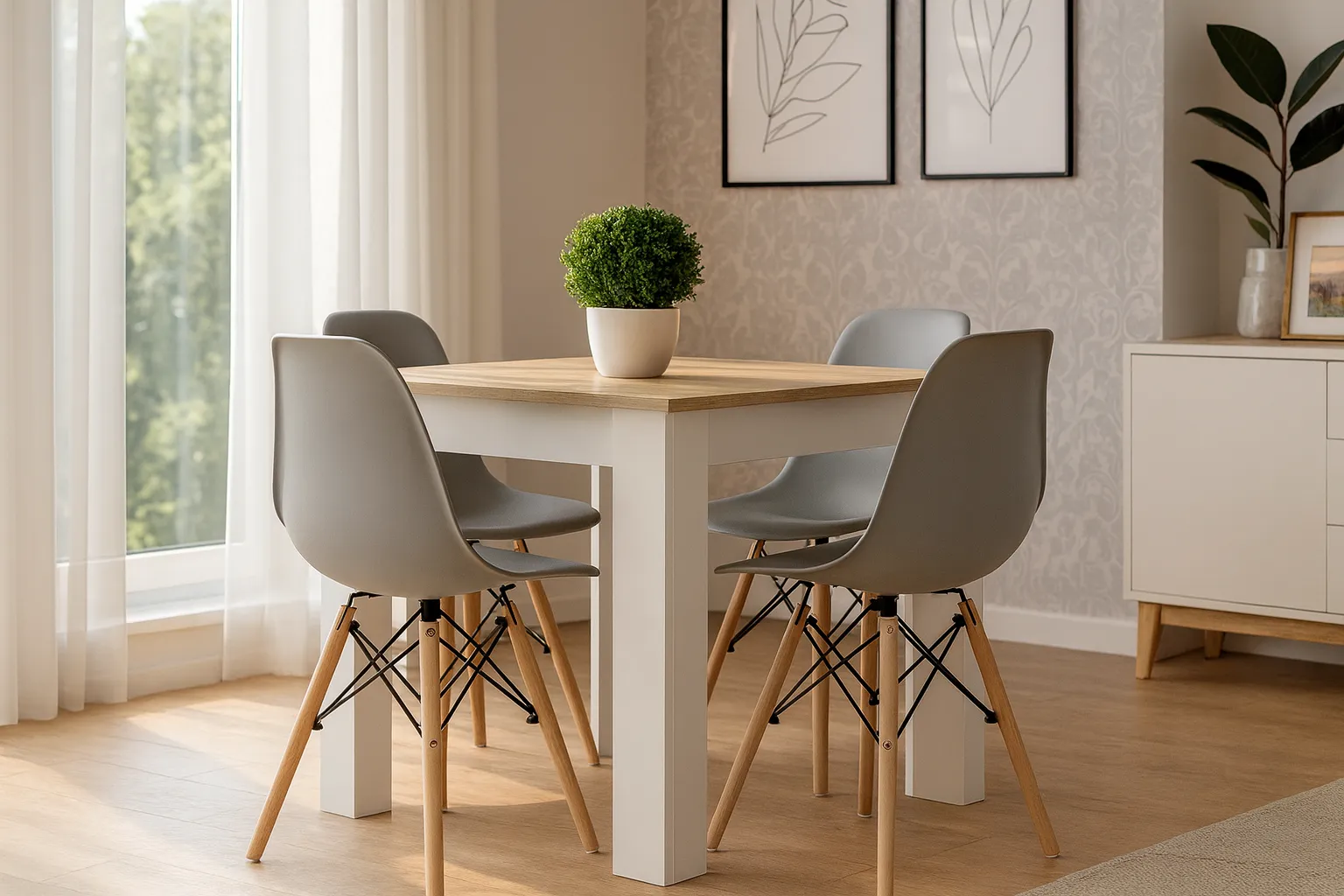 Marzysz o wnętrzu, które emanuje harmonią i prostotą? Stół z krzesłami Camino 4X marki Edinos Premium to zestaw stół z czterema krzesłami, który idealnie wpisuje się w skandynawski, nowoczesny design. Wyobraź sobie poranki rozpoczęte przy tym stole, z kubkiem kawy w ręku i delikatnym świtem zaglądającym przez okno. Nowoczesna elegancja tego zestawu sprawi, że każda chwila spędzona z rodziną lub przyjaciółmi stanie się wyjątkowa. Delikatna estetyka i funkcjonalność Camino 4X wprowadzą do Twojego domu uczucie spokoju i nowoczesnej klasy. Zainspiruj się tym, co proste i piękne.