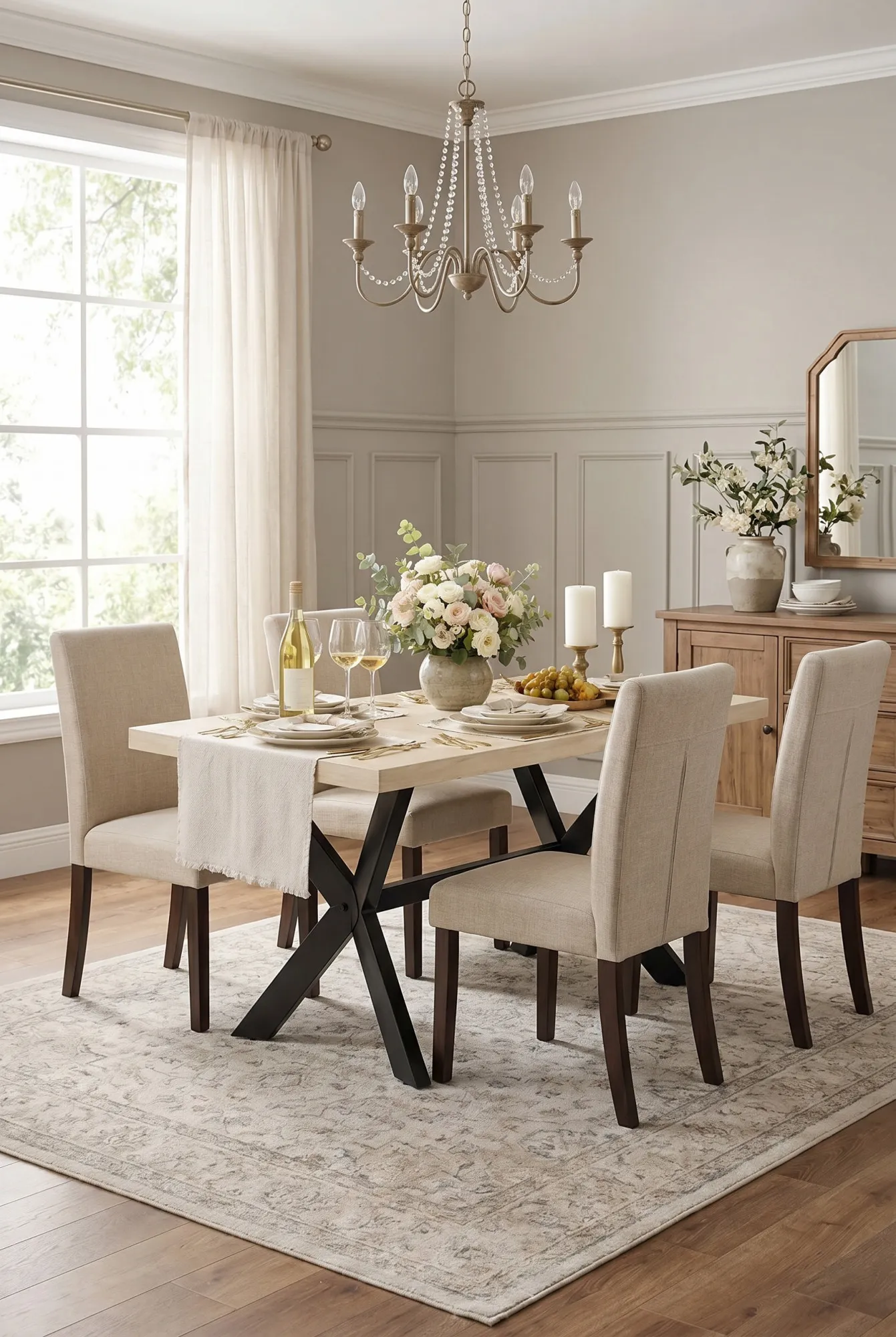 - Materiał: blat z litego, bielonego drewna mango + nogi z malowanej proszkowo stali.