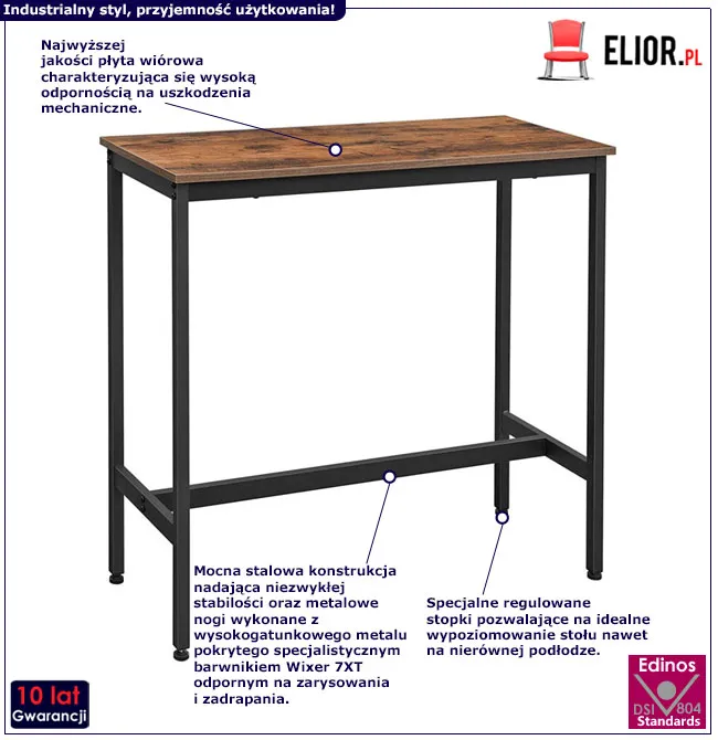 • Modny kolor: rustykalny brąz, czarny. W naszej ofercie posiadamy także inne stoły barowe. Kliknij i stwórz swój wyjątkowy zestaw mebli.