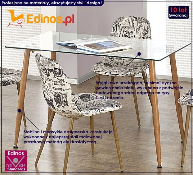 - Materiał: Wysokiej jakości elementy stalowe, malowane proszkowo metodą elektrostatyczną. Blat wykonany został z podwójnie hartowanego szkła (odpornego na rysy i uszkodzenia).