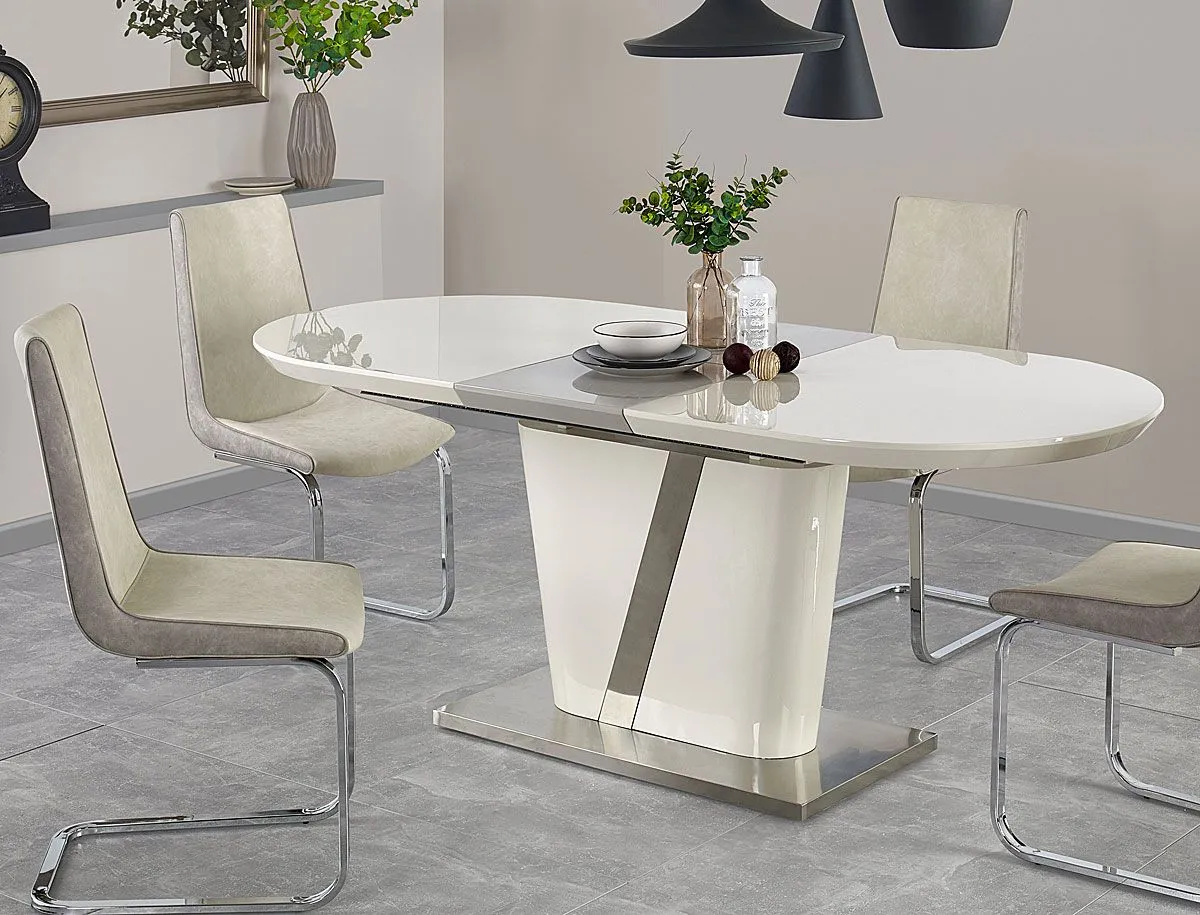 stół rozkładany biały połysk, popielaty.