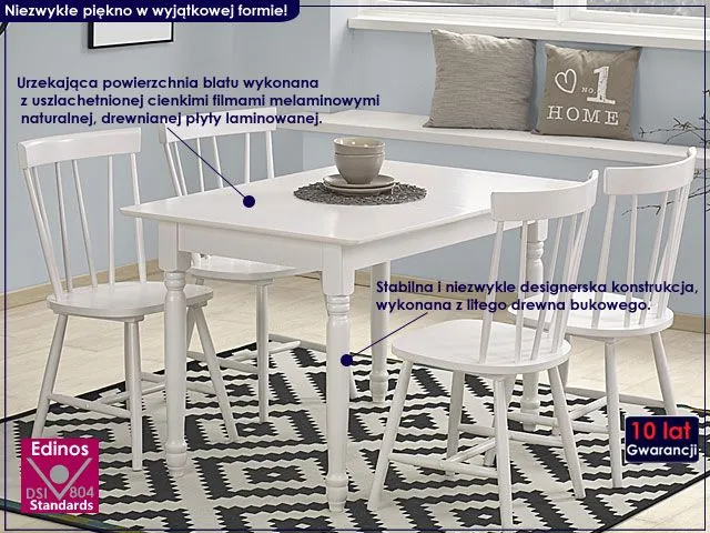 stół biały drewniany landis Krzesła widoczne na zdjęciu (oraz pozostałe wyjątkowe modele) znajdziesz na innych naszych ofertach klikając w ten link. Zamawiające produkty razem, oszczędzasz na wspólnej wysyłce.