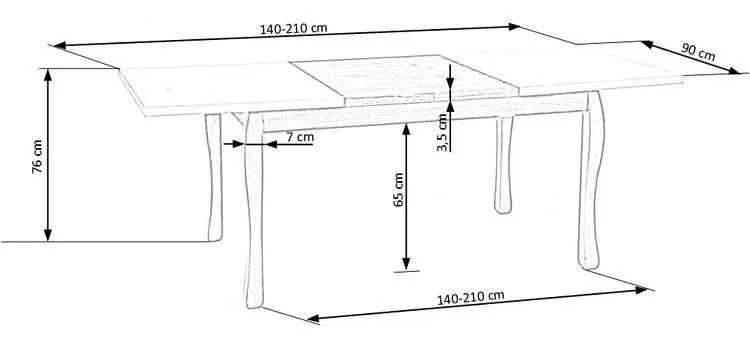 - Wymiary: długość 140 cm, długość po rozłożeniu: 210 cm, szerokość: 90 cm, wysokość: 76 cm.
