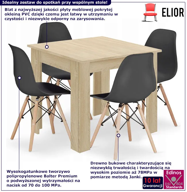 Dotyczy: Stół biały + dąb sonoma z szarymi krzesłami 4 sztuki - Camino 4X