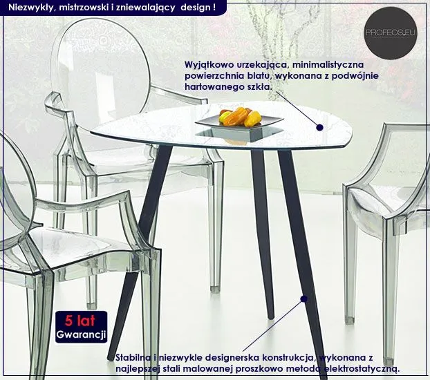Stół to centralny mebel Twojego wnętrza. Mogą dziać się przy nim rzeczy piękne, czarodziejskie i fascynujące. Niestety Twój stół usłyszy kiedyś także inne reakcje emocjonalne jak chociażby gniew, przygnębienie czy rozdrażnienie. Zadbaj więc o to, aby ten najważniejszy mebel Twojego domu, godnie znosił wszystkie panujące u Ciebie myśli, nastroje i emocje. Postaw na profesjonalny produkt znanego producenta, który jako jedyny na rynku oferuję Ci aż 5 lat gwarancji i niebywale ekscytujący design. Zakochasz się w nim od pierwszego wejrzenia.
