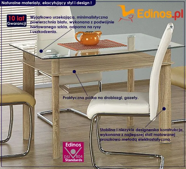 Stół to centralny mebel Twojego wnętrza. Mogą dziać się przy nim rzeczy piękne, czarodziejskie i fascynujące. Niestety Twój stół usłyszy kiedyś także inne reakcje emocjonalne jak chociażby gniew, przygnębienie czy rozdrażnienie. Zadbaj więc o to, aby ten najważniejszy mebel Twojego domu, godnie znosił wszystkie panujące u Ciebie myśli, nastroje i emocje. Postaw na profesjonalny produkt znanego producenta, który jako jedyny na rynku oferuje Ci aż 10 lat gwarancji i niebywale ekscytujący design. Zakochasz się w nim od pierwszego wejrzenia.