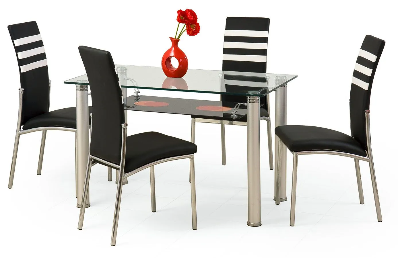 - Materiał: Wysokiej jakości chromowana stal nierdzewna. Blat wykonany został ze specjalnie hartowanego szkła (dokładnie szlifowanego i polerowanego na obrzeżach).