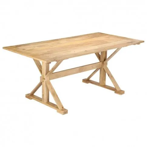 Driven 3X to naprawdę duży stół, który pomieści wiele osób, ponieważ jego blat mierzy aż 180 x 90 cm, a dzięki odpowiedniej grubości blatu jest on w stanie udźwignąć duży ciężar. Jeśli chodzi natomiast o wygląd mebla, to szczególną uwagę przyciągają jego drewniane skrzyżowane nogi w kształcie liter X połączone masywną belką, które nadają mu nowoczesnego charakteru i doskonale stabilizują całą konstrukcję.