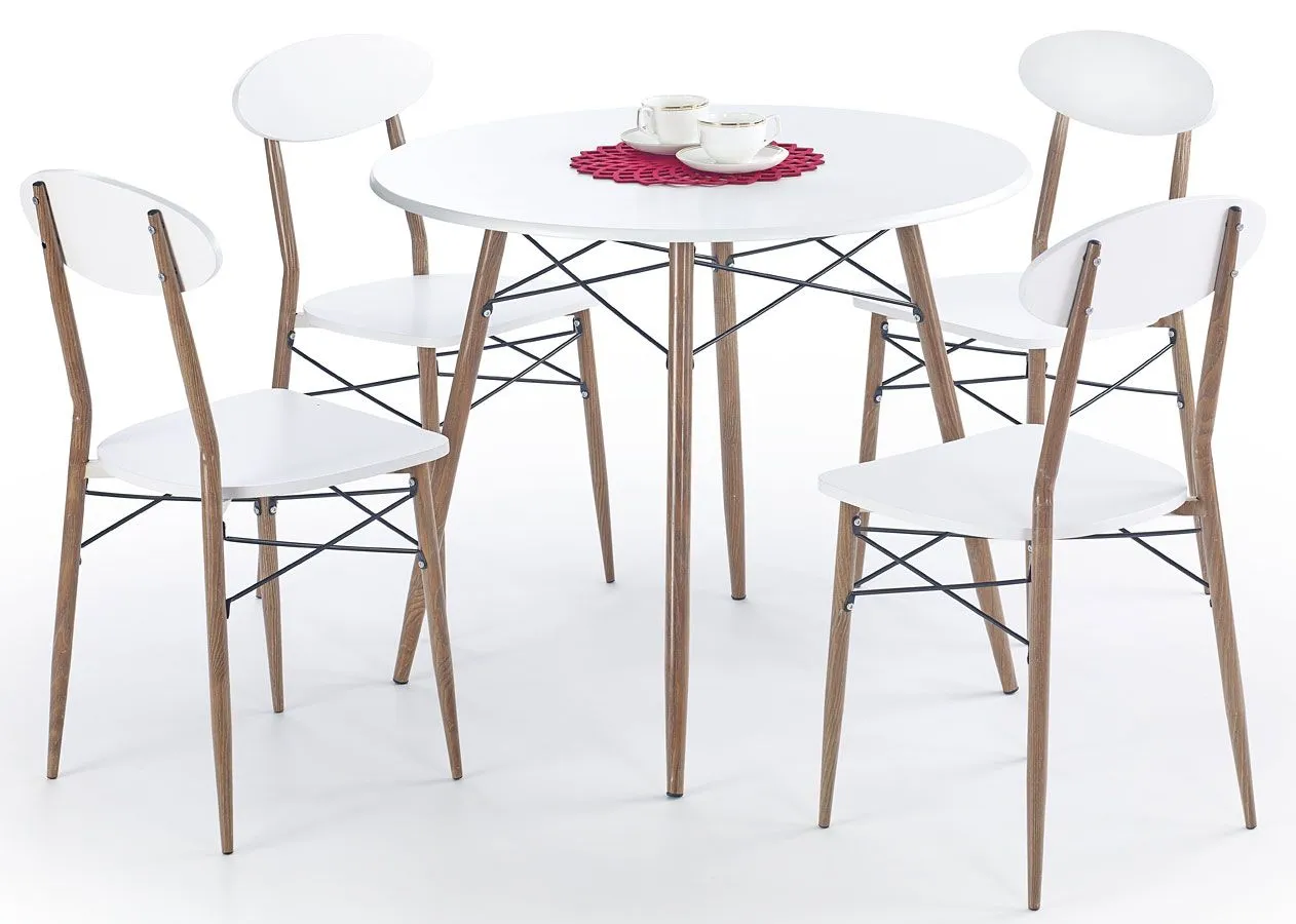Komfortowy Zestaw Sima wyróżnia się nie tylko swoją unikalną formą, ale także zastosowaniem materiałów najlepszej jakości. To dlatego cieszy się on powodzeniem wśród osób lubiących ciekawe rozwiązania. Użyta do blatu stołu oraz krzeseł płyta laminowana MDF w kolorze biały połysk została uszlachetniona cienkimi filmami melaminowymi. Posiada także specjalne włókna ułożone różnkokierunkowo o strukturze sinusoidalnej, co zapewnia nadanie jej cech jakościowych oraz wytrzymałościowych. Designerski blat wykonany został ze specjalnej płyty komórkowej, której główną zaletą jest redukcja ciężaru bez utraty stabilności oraz innych funkcji konstrukcyjnych. Nowy zestaw Sima jest z pewnością praktyczny i wyjątkowo elegancki.