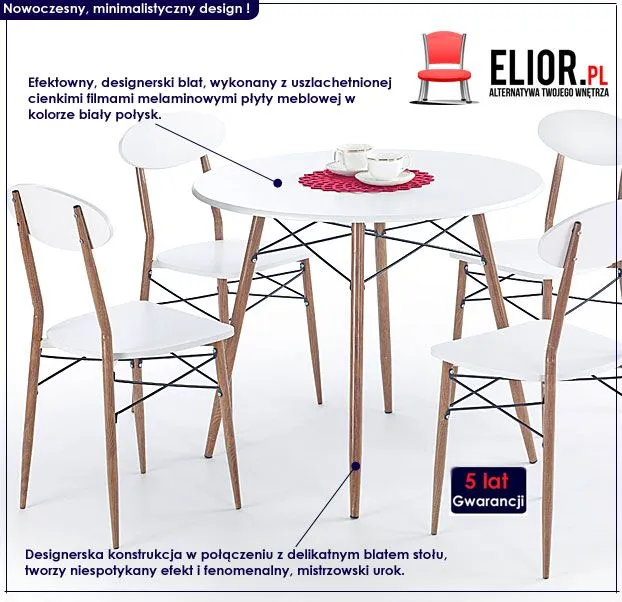 Piękny zestaw stołowy w minimalistycznym stylu.. świetnie prezentuje się w każdej niewielkiej kuchni, jadalni lub salonie. Sprawdź ofertę firmy Elior i zobacz pokaz najnowszego zestawu Sima (Stół + 4 krzesła). Wyobraź sobie już dziś jak efektownie prezentowałyby się w Twoim wnętrzu... Niezwykły, unikalny design marki Elior. Elegancja, wdzięk i jakże modny ostatnio minimalizm to cechy najnowszego zestawu Sima i pokusa nie tylko dla Twojego oka...