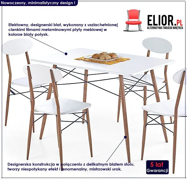 Piękny zestaw stołowy w minimalistycznym stylu.. świetnie prezentuje się w każdej niewielkiej kuchni, jadalni lub salonie. Sprawdź ofertę firmy Elior i zobacz pokaz najnowszego zestawu Sima 3X (Stół + 4 krzesła). Wyobraź sobie już dziś jak efektownie prezentowałyby się w Twoim wnętrzu... Niezwykły, unikalny design marki Elior. Elegancja, wdzięk i jakże modny ostatnio minimalizm to cechy najnowszego zestawu Sima 3X i pokusa nie tylko dla Twojego oka..