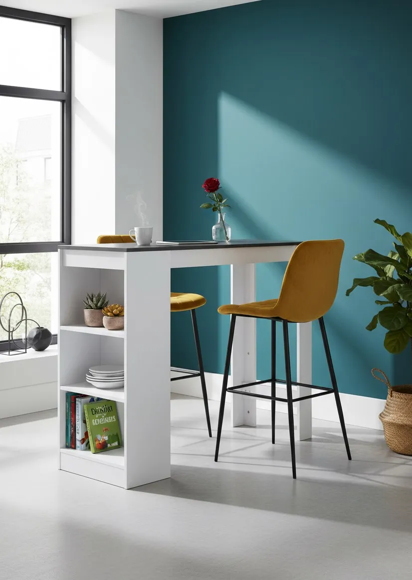 STOLIK BAROWY Z PÓŁKAMI GABRIEL – BIAŁY I NATURALNY to nowoczesny i praktyczny meble. Super wykonanie. Fajny kolor. Super zastosowanie. Posiadam od niedawna i jestem mega zadowolona.