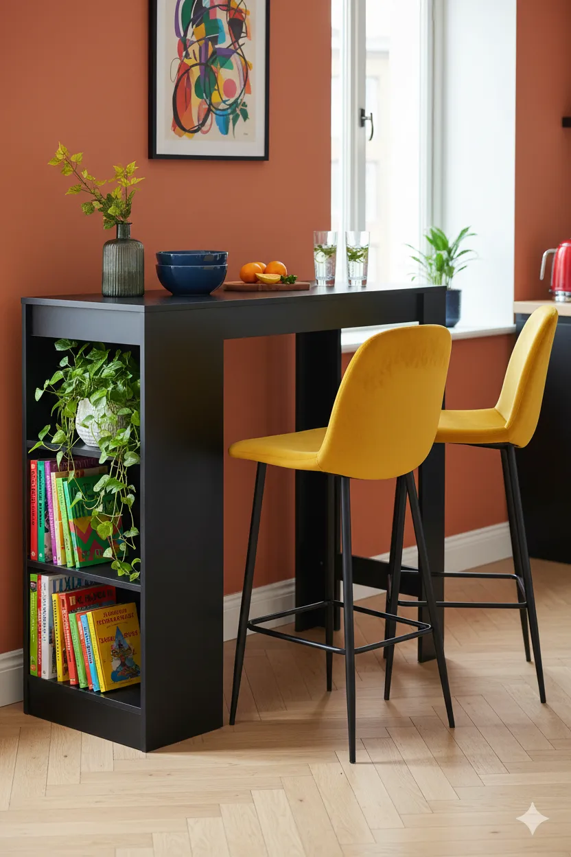 Dosyć zgrabna i schludna konstrukcja, pozwala zaoszczędzić sporo miejsca, blat zapewnia dużo miejsca na trunki i jadło, minimalizm wpasuje się w każde mieszkanko : )