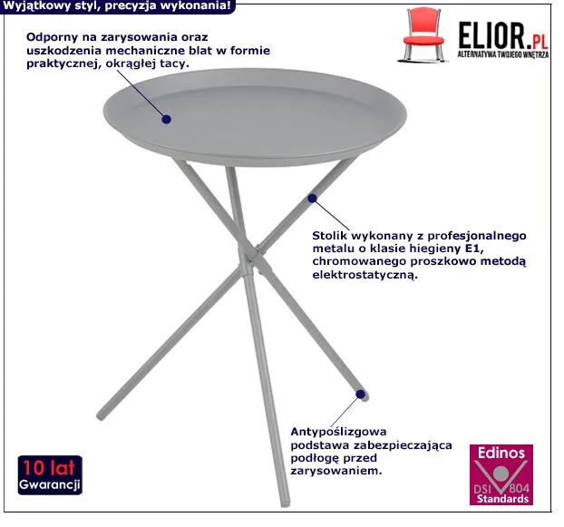 - Modna kolorystyka: szary. Kliknij w link i sprawdź także inne okrągłe stoliki w sklepie Edinos.pl. Stwórz swój praktyczny zestaw mebli.