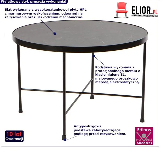 - Modna kolorystyka: czarny, marmur. Kliknij w link i sprawdź także inne okrągłe stoliki kawowe w sklepie Edinos.pl. Stwórz swój praktyczny zestaw mebli.