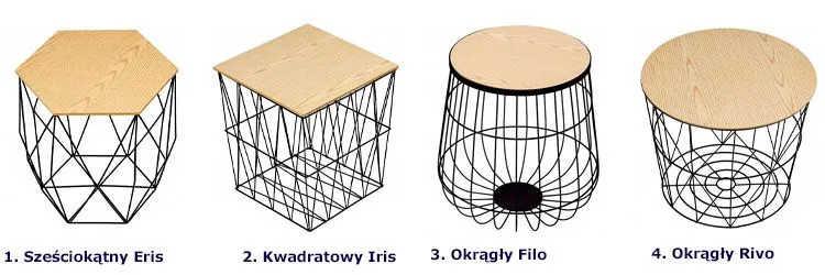 W naszej ofercie znajdziesz jeszcze inne warianty geometryczne stolika kawowego z blatem w kolorze jasnej sosny:
