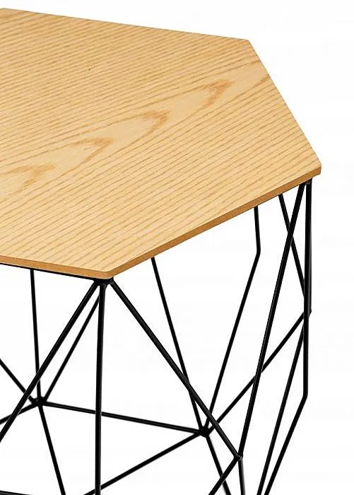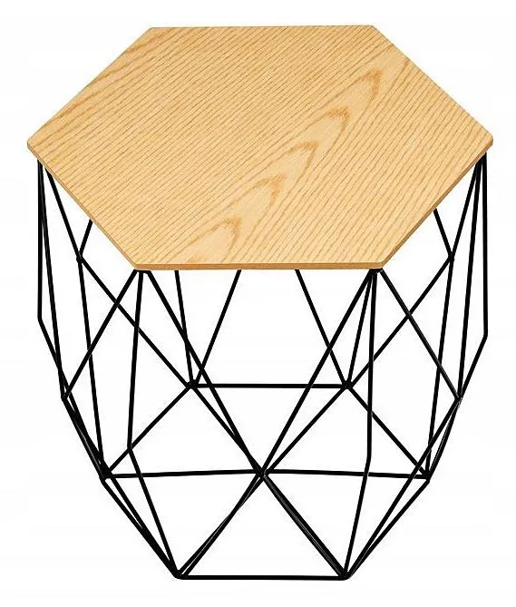 Geometryczna forma pasuje do nowoczesnych wnętrz z pomysłem, w których każdy element wyposażenia oprócz pełnienia oczywistej funkcji wnosi coś ciekawego do wymiaru estetyki wnętrza, komunikując odwiedzającym upodobania i gust właściciela. Sześciokątny zdejmowany blat tworzy kokieteryjny duet z czarnym, malowanym proszkowo delikatnym drucianym stelażem układającym się w regularny, przyciągający wzrok wzór. Ta aranżacja dodaje i tak zgrabnemu mebelkowi dodatkowej lekkości i świeżości oraz sprawia, że niewątpliwie może stanowić element dekoratorski przełamujący łagodniejsze czy wręcz mało ciekawe cechy wnętrza, w którym docelowo się znajdzie. Stolik kawowy EISL może także pełnić funkcję „przechowalnika” na drobne przedmioty: gazety, zabawki, piloty, ładowarki, czy cokolwiek potrzebujemy mieć pod ręką w salonie, ponieważ ma zdejmowany blat. Nadaje się perfekcyjnie także do sypialni, by zawsze służyć przy Twym boku powierzchnią, na którą odłożysz książkę, postawisz budzik, kubek herbaty, czy telefon.