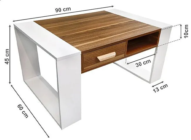 W naszym stoliku kawowym Rokus masz do dyspozycji dwie potencjalne skrytki - szufladę i wnękę: