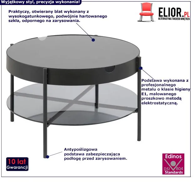 - Modna kolorystyka: czarny, dąb. Kliknij w link i sprawdź także inne okrągłe stoliki kawowe w sklepie Edinos.pl. Stwórz swój praktyczny zestaw mebli.