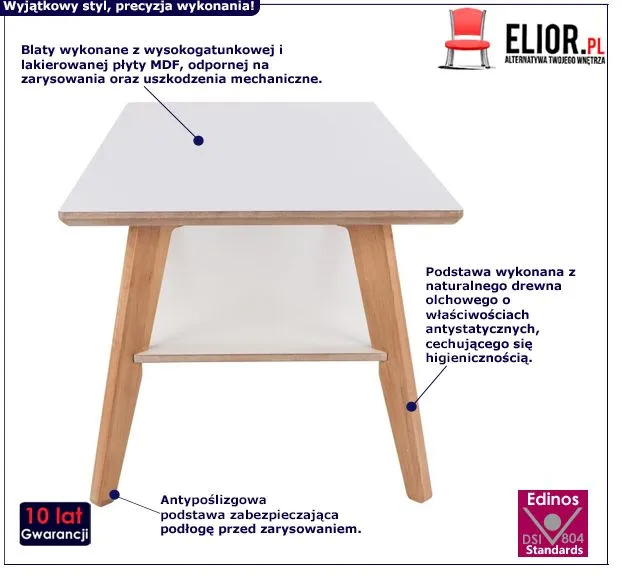 - Modna kolorystyka: biały, naturalne drewno. Kliknij w link i sprawdź także inne skandynawskie stoliki w sklepie Edinos.pl. Stwórz swój praktyczny zestaw mebli.