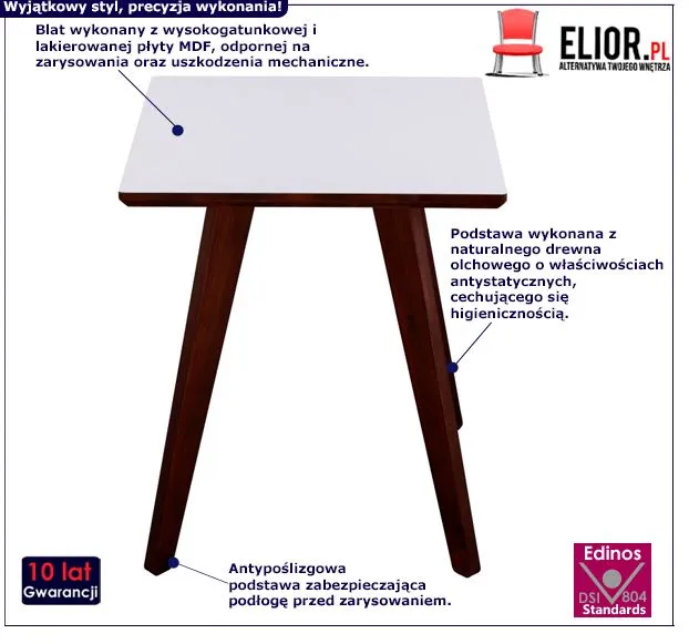 - Modna kolorystyka: biały, drewno w kolorze orzech Kliknij w link i sprawdź także inne skandynawskie stoliki w sklepie Edinos.pl. Stwórz swój praktyczny zestaw mebli.