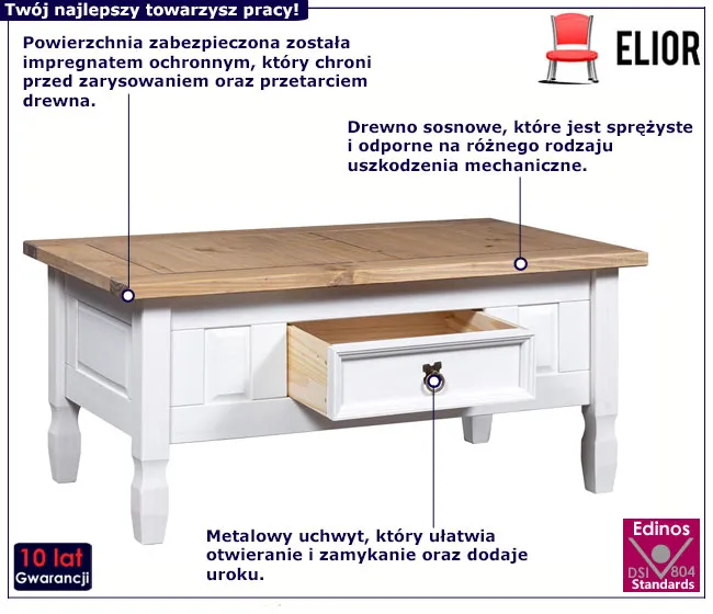 Dotyczy: Drewniany stolik kawowy z 2 szufladami - Mires 3X