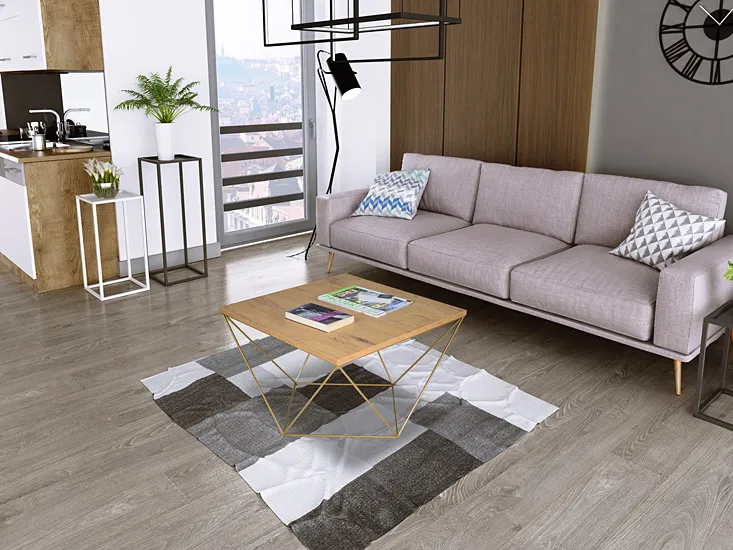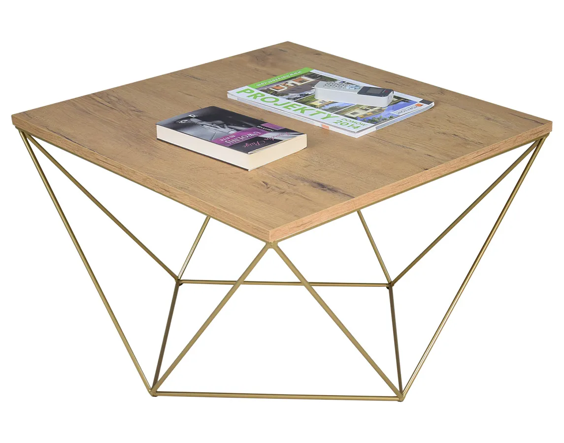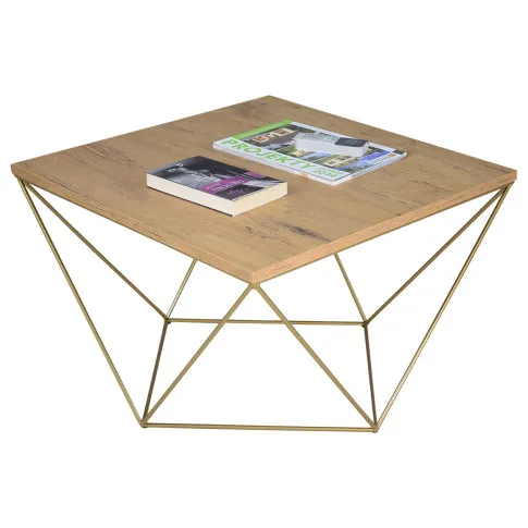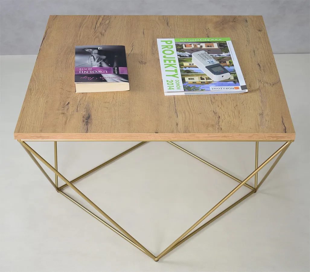 Dotyczy: Stolik kawowy z metalowym stelażem dąb sonoma + złoty - Mokita 3X