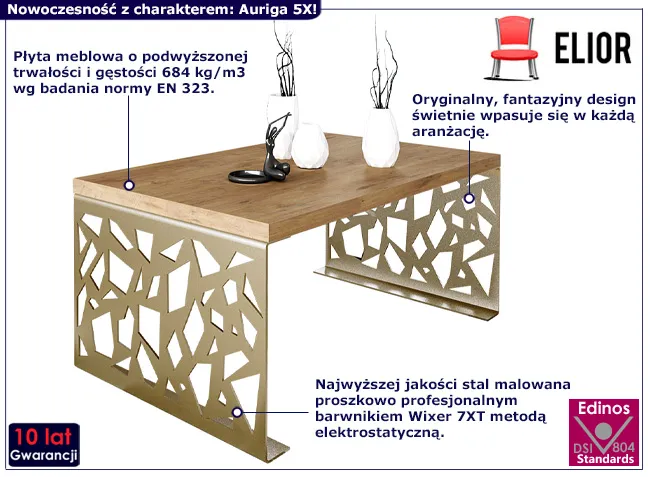 Dotyczy: Prostokątna ława w stylu glamour złoty + dąb sonoma - Ofelio 5X