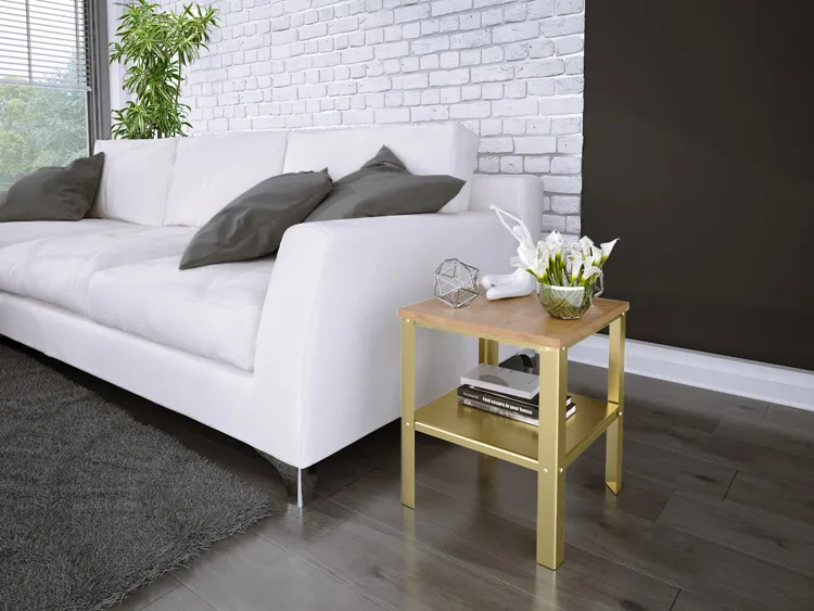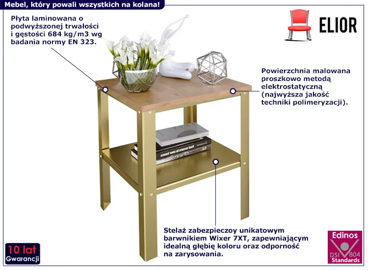 Dotyczy: Minimalistyczny stolik kawowy złoty + dąb artisan - Sufix 3X