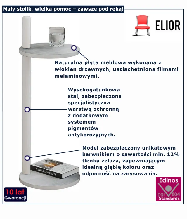 • Stabilność – pewne oparcie dla napojów, książek i drobiazgów.
