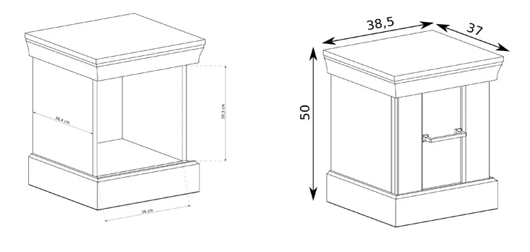 - Wymiary całkowite: wysokość: 50 cm, szerokość: 38,5 cm, głębokość: 37 cm.