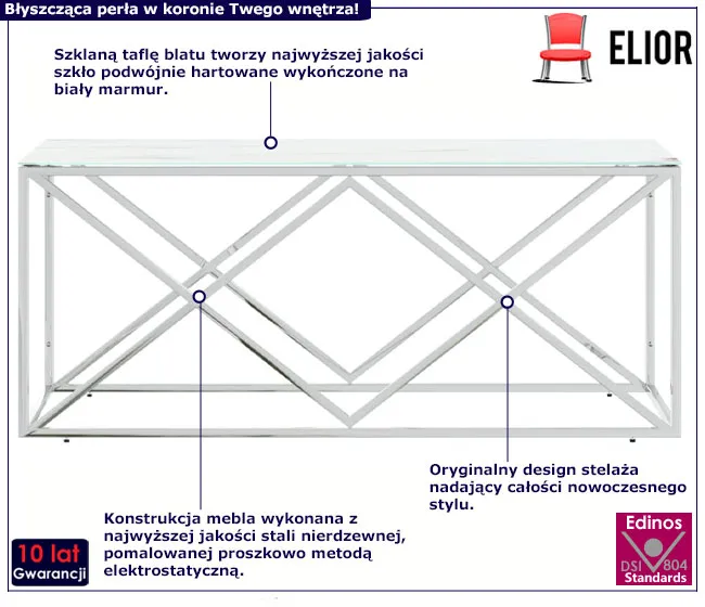 • szklany blat łączony ze srebrnym, geometrycznym stelażem tworzy nowoczesny i atrakcyjny wygląd.